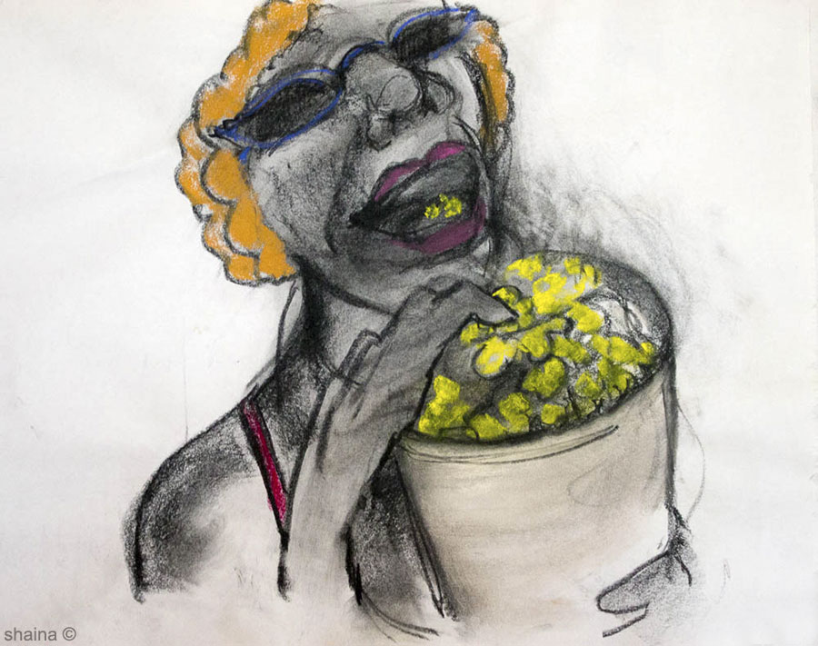 The Popcorn Eater, charcoal and pastel 40 x 60 cm
