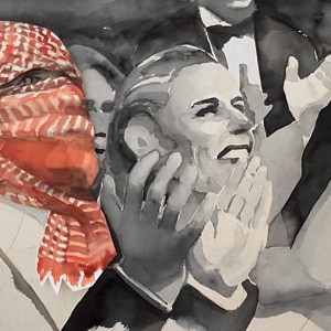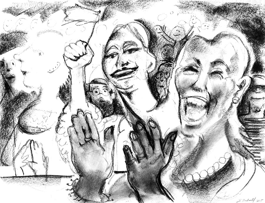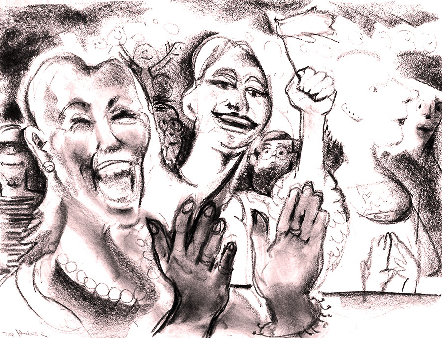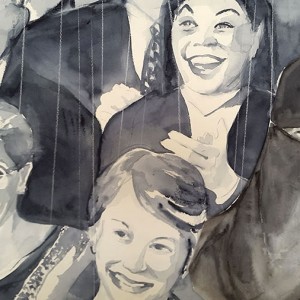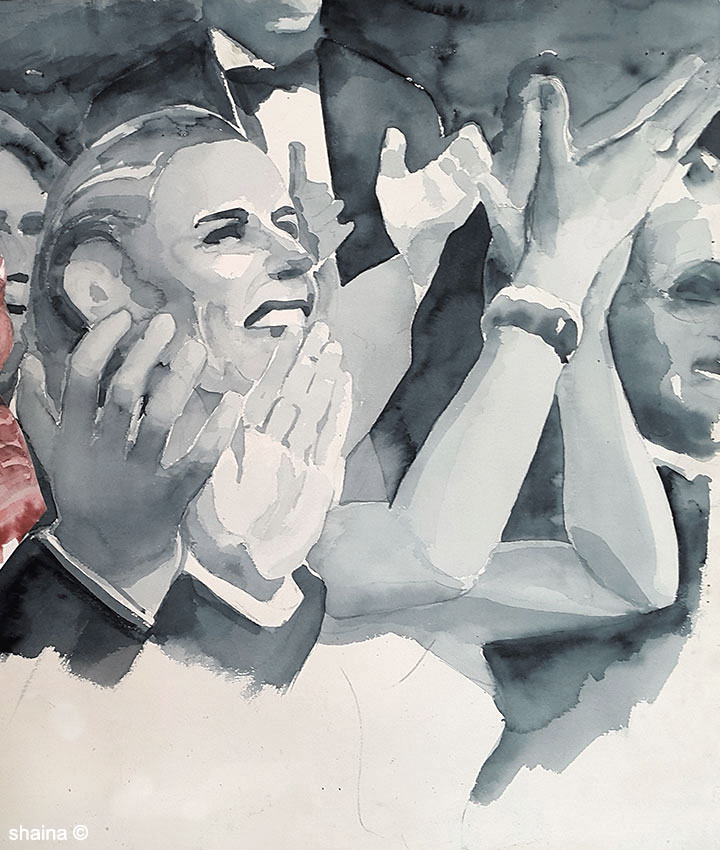 Miss America Clapping, watercolor 55 x 77 cm