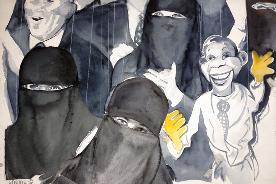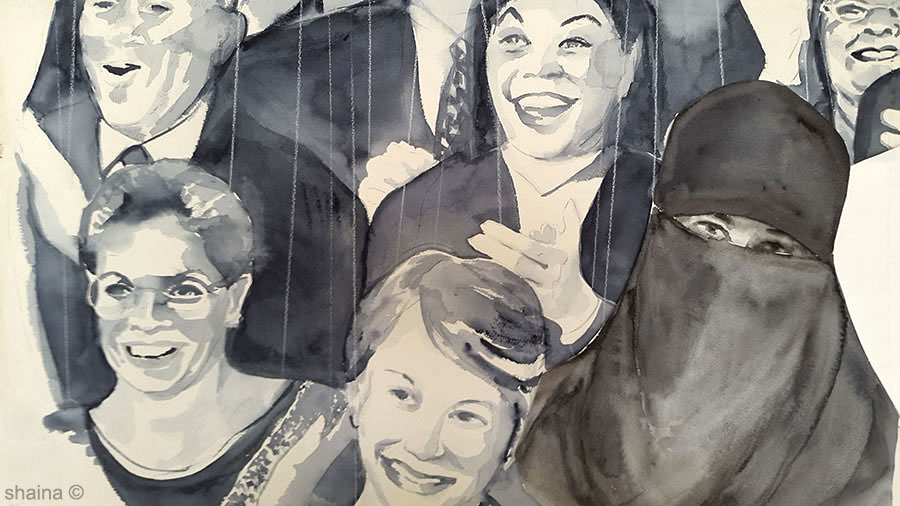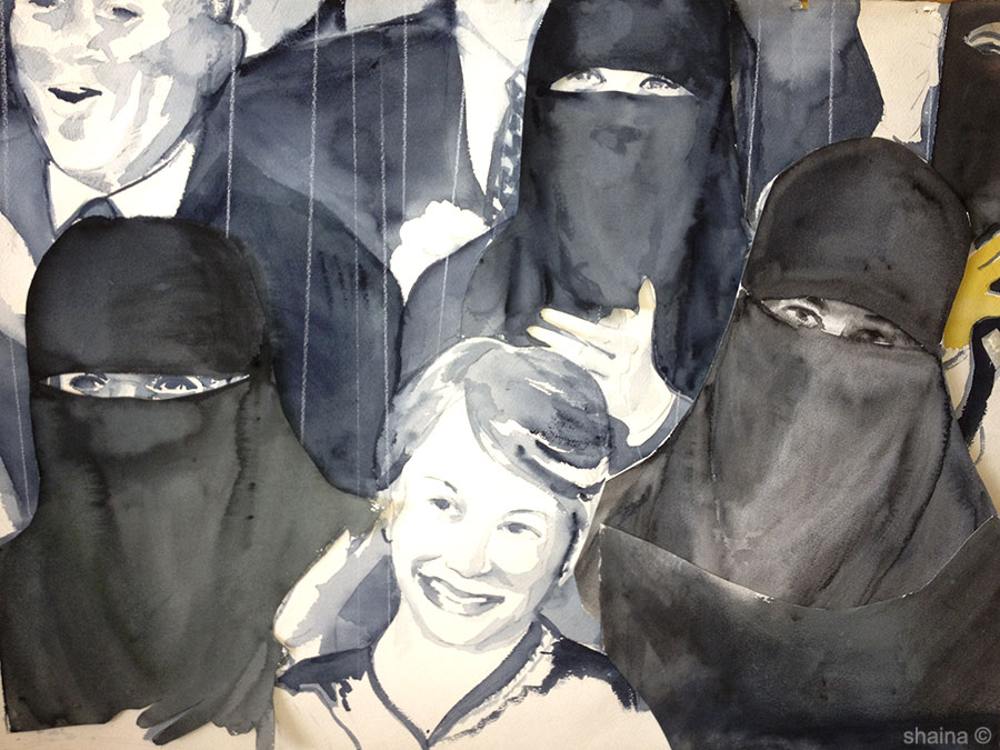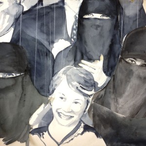 A Veiled Sneak Preview, watercolor 55 x 77 cm