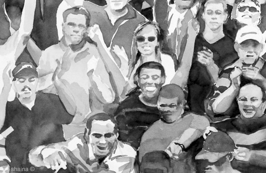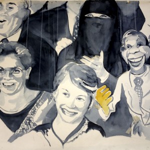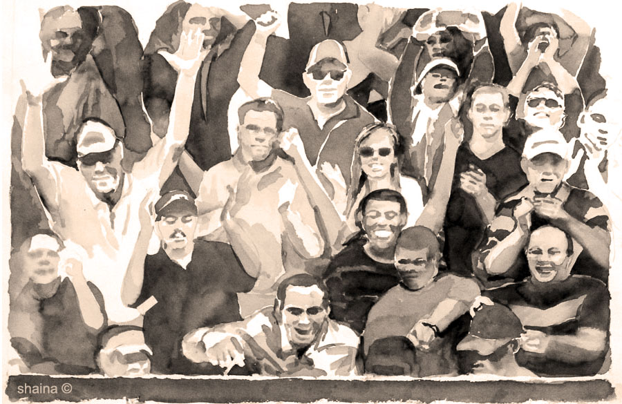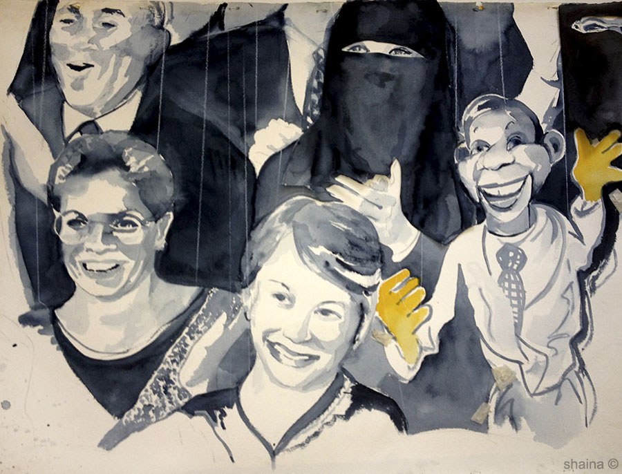 A Puppet Crowd Cheers 3, watercolor 55 x 77 cm