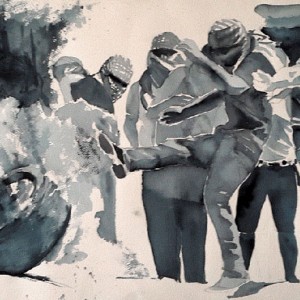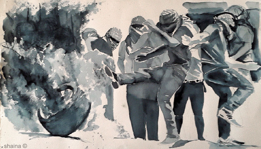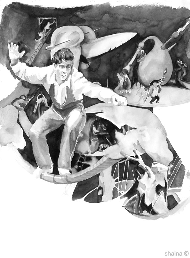 The Rope He Walks, watercolor 55 x 77 cm