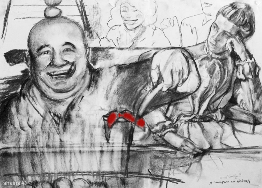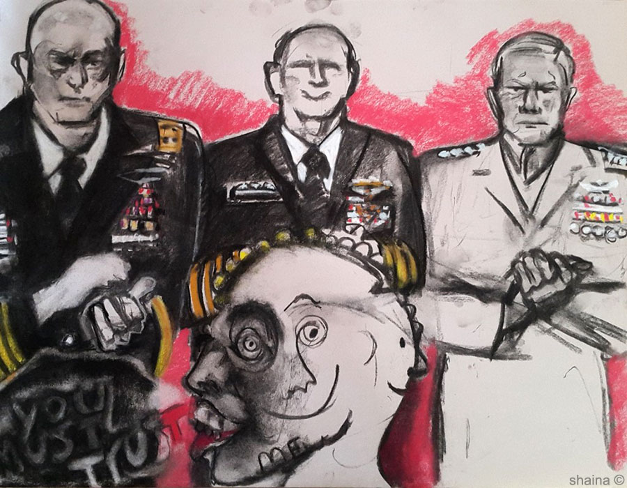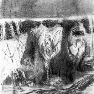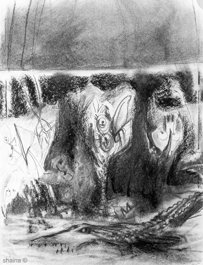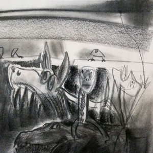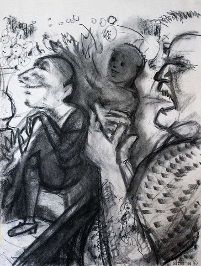 Behind the Scenes of Intelligence, charcoal 40 x 60 cm
