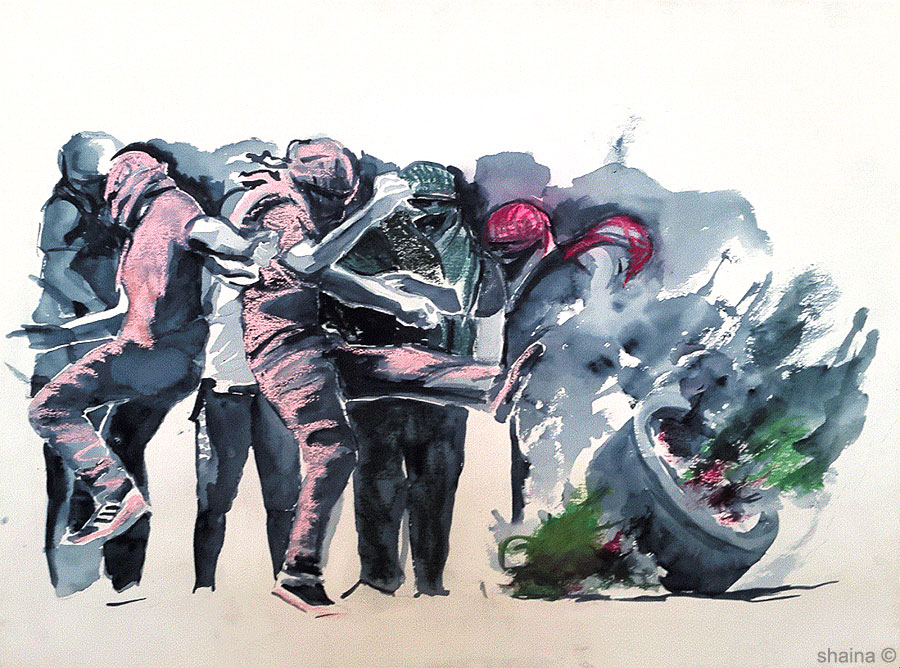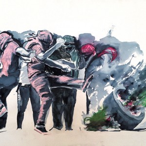 Kicking Up A Storm Part 1, watercolor 55 x 77 cm
