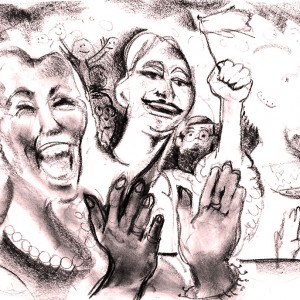 detail, A Puppet Crowd Cheers,