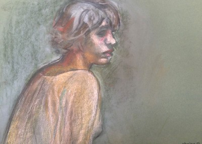 Portrait With a Red Coat, pastel, 48 x 63 cm