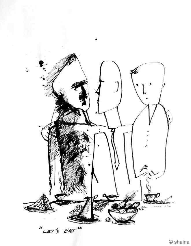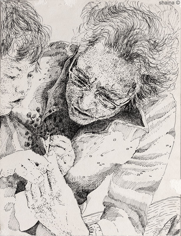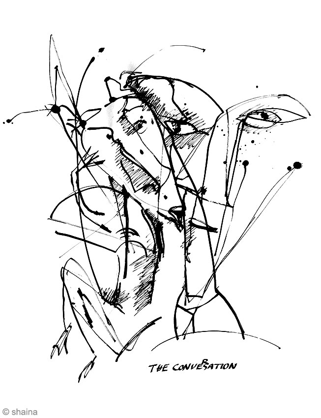 I love the flow, the mystery and spontaneity of an ink loaded brush, pen nib or wooden stick. Gestures – blunt, humorous, action packed, capture my moods and fondness for the immediacy of life. And then again, inks strong opacity inspires moments to create bold graphic contrast. Gently used, ink lends itself to a more narrative, sensitive and classic illustrative side of me. Ink: it all depends on the point one wants to make.