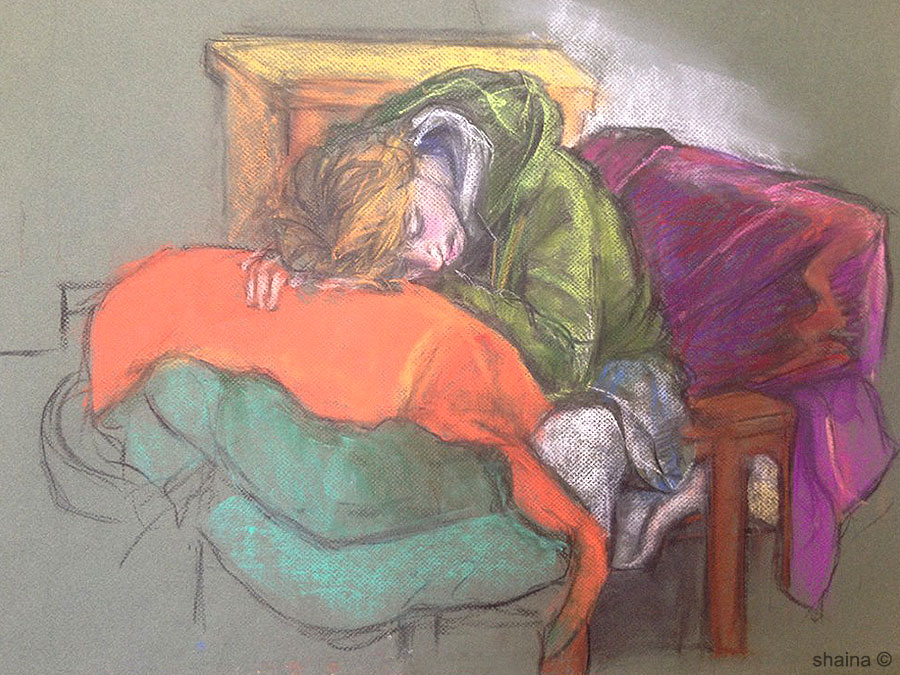 On site studies of models,  friends, family.